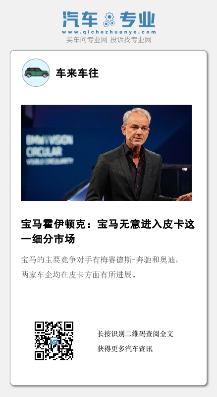 1月31日,援引外媒motor 1,宝马集团设计高级副总裁霍伊顿克向外媒表示:“不要指望很快看到宝马的皮卡,这显然不适合宝马品牌。我们不必追求正在发生的每一种趋势,如果宝马决定进入一个全新细分市场,那么我们希望长期留在那里。”