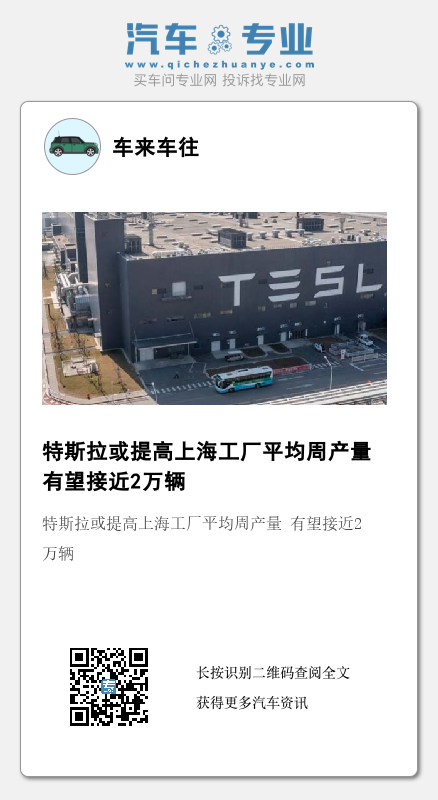 易车讯 据路透社报道,特斯拉决定将上海工厂2、3月的平均周产量提高到近2万辆,目的是满足更高的市场需求,接近去年9月份的水平。去年9月,上海工厂生产了82088辆Model 3和Model Y ( 参数 | 特斯拉全球交付量的一半。