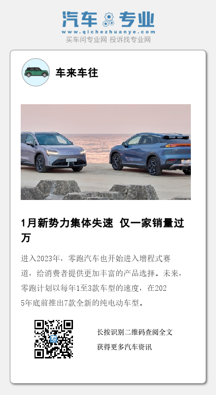 值得关注的是,零跑汽车将在2月9日推出零跑C11增程版车型,新车的纯电续航里程将达到285km,预计售价在20万元左右,第一季度开启交付。