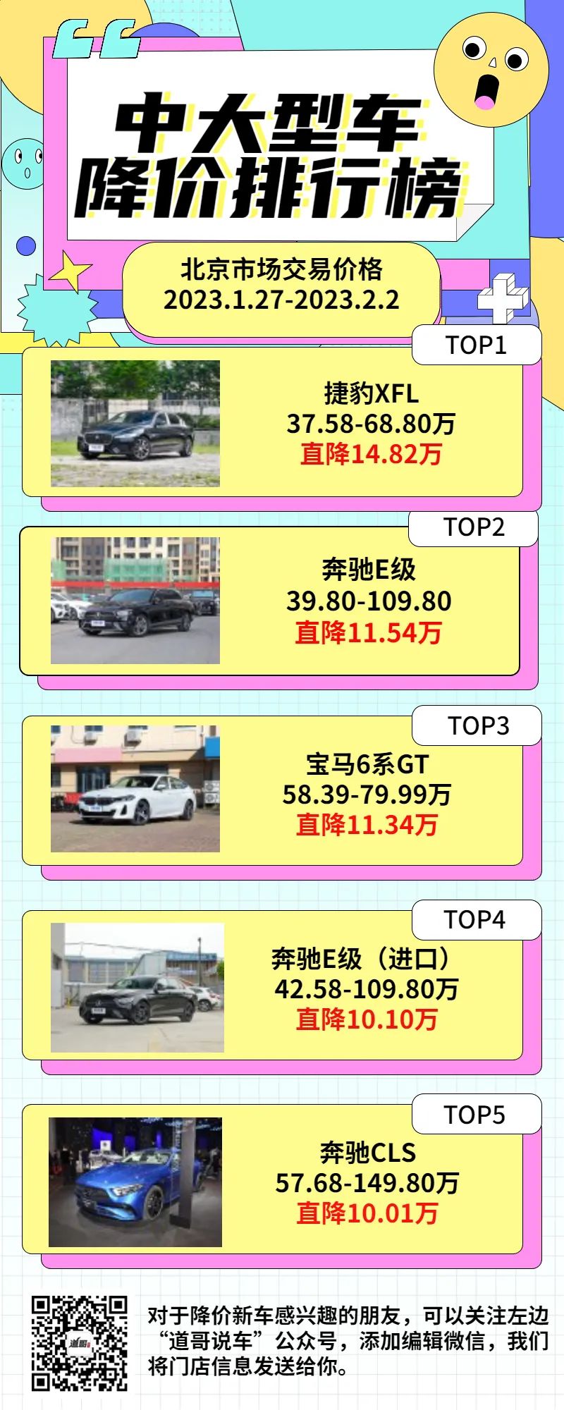 小型车方面降价前五位的基本和年前没什么两样;中型车方面,沃尔沃S60以直降6.5万元冲进前五;中大型车方面,虽然奔驰E级、捷豹XFL、宝马6系GT依旧在列,但是排列顺序发生了变化,捷豹XFL以直降14.82万元冲到榜首,比年前再度便宜了近4万元,奔驰E级和宝马6系GT降价金额与年前差不多。此外,奔驰E级(进口)和奔驰GLS也出现在了降价前五排名中,降价幅度均超过了10万元。
