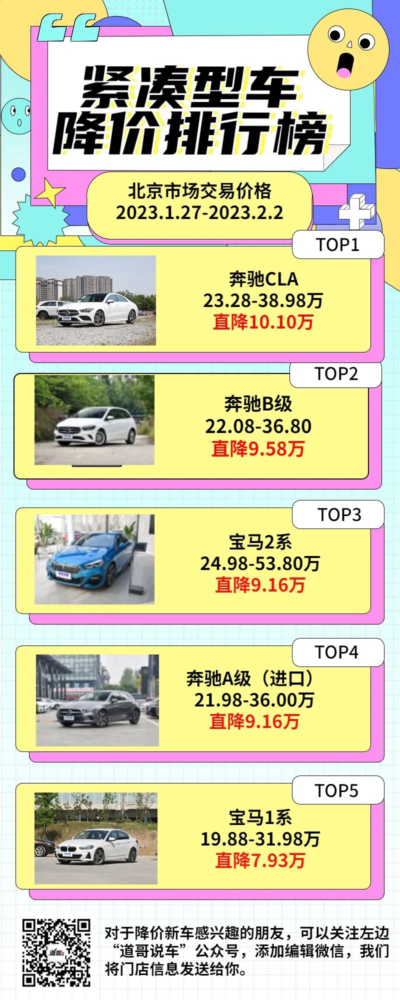 紧凑型车方面,年前降价排行并未出现的奔驰CLA是榜中唯一降幅超过10万元的车型,想要购买这款车的消费者可以考虑一番,剩下的几款车年前优惠时也都存在。