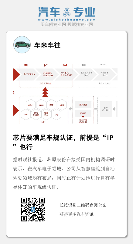 据财联社报道,芯原股份在接受国内机构调研时表示,在汽车电子领域,公司从智慧座舱到自动驾驶领域均有布局,同时正有计划地进行自有半导体IP的车规级认证。