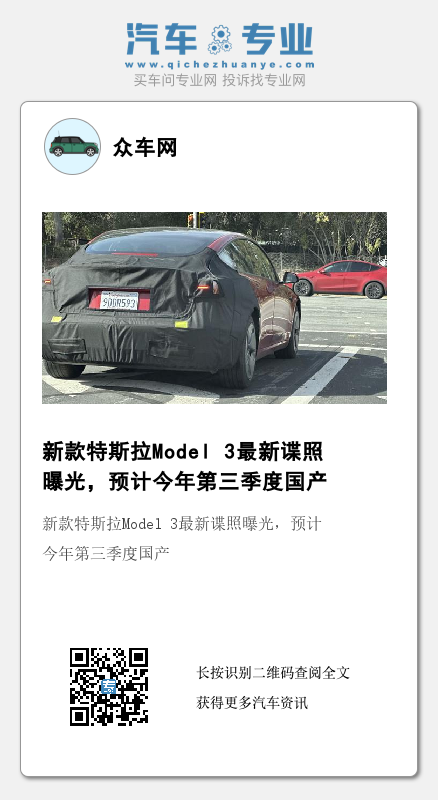日前,我们从海外媒体处获悉,新款特斯拉Model 3谍照再次曝光,虽然测试车还覆盖着较为厚重的伪装,但更多细节也被展示出来,从伪装位置来看,新车预计将在车头及车尾进行伪装,有望在今年三季度投产,特斯拉上海超级工厂也将同步进行投产。