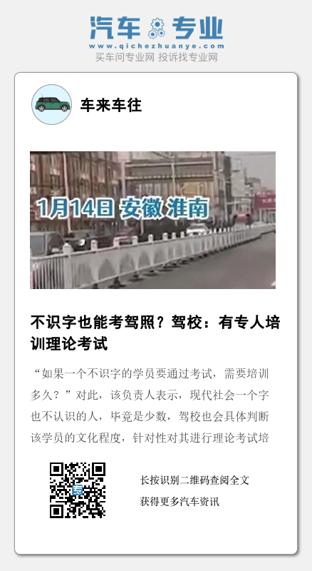 安徽淮南一驾校挂横幅打广告,称不识字也能考驾照,网友质疑科目一和科目四怎么通过?1月15日,该驾校多名工作人员向极目新闻记者介绍,这个培训业务确实存在,有专门讲师培训学员理论考试,教不识字的学员认字,学员报名前,可以来驾校测评文化程度,根据测评情况收取培训费。学员经过理论培训,如果3次考试未通过就可以退钱。