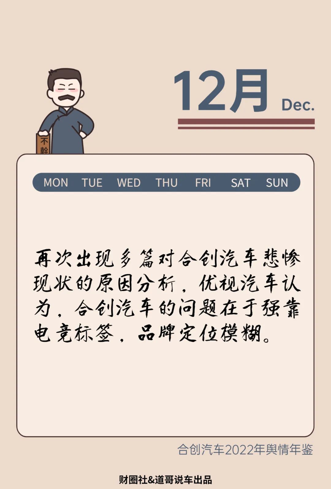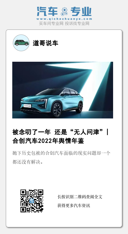 进入四季度,10月,再有文章指出合创汽车销量惨淡的痛处;11月,有车主在社区平台上分享合创z03提车血泪经历;12月,再次出现多篇对合创汽车悲惨现状的原因分析,优视汽车认为,合创汽车的问题在于强靠电竞标签,品牌定位模糊。