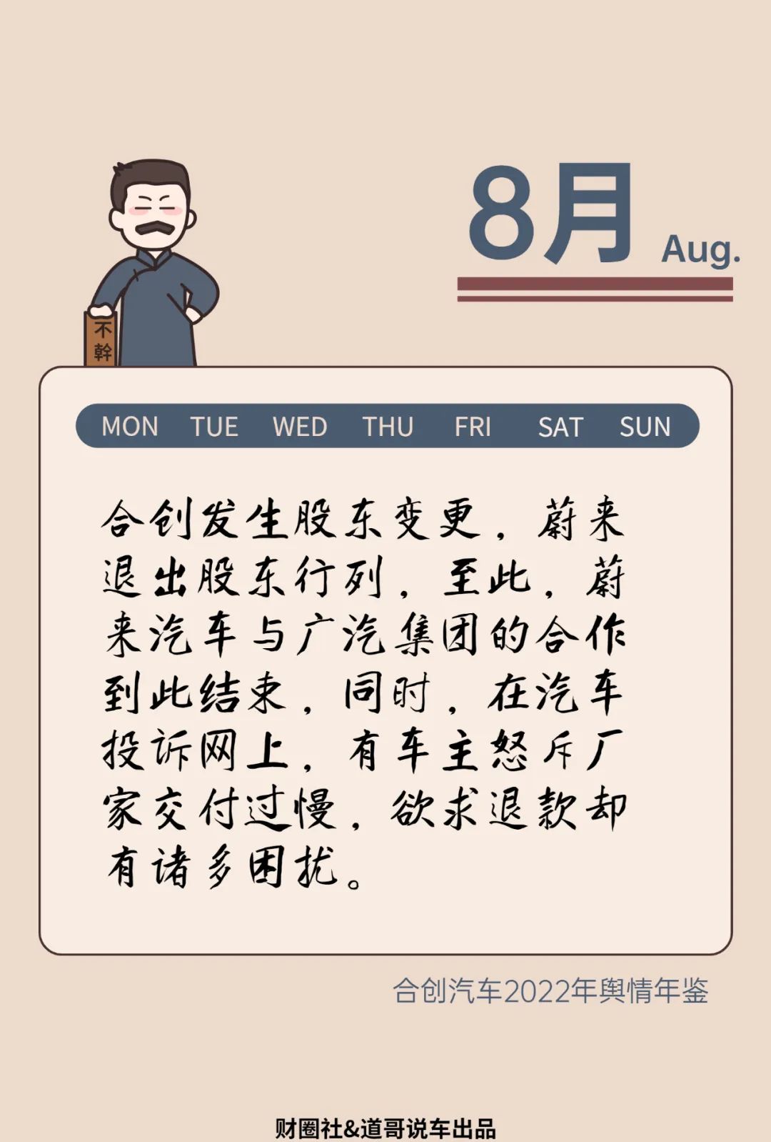 进入三季度,7月,蓝莓财经再指这家由广汽、蔚来合资成立的,后续又有珠江投管资金入局的合创汽车鲜为人知的原因;8月,合创发生股东变更,蔚来退出股东行列,至此,蔚来汽车与广汽集团的合作到此结束,同时,在汽车投诉网上,有车主怒斥厂家交付过慢,欲求退款却有诸多困扰;9月,在六安网事区域平台上,有车主投诉合创汽车售前提供虚假信息诱导消费者交定金。