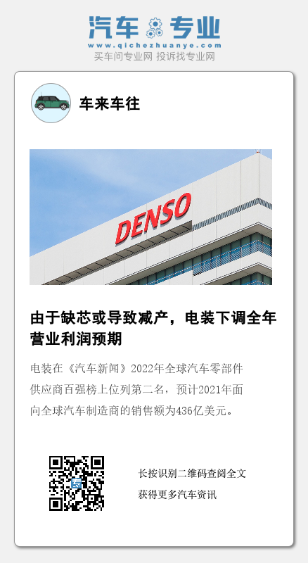 据外媒报道,日本汽车零部件供应商电装(Denso Corp.)表示芯片短缺可能导致汽车减产,因此将本财年(2022年4月至2023年3月)的营业利润预测下调了12.5%。