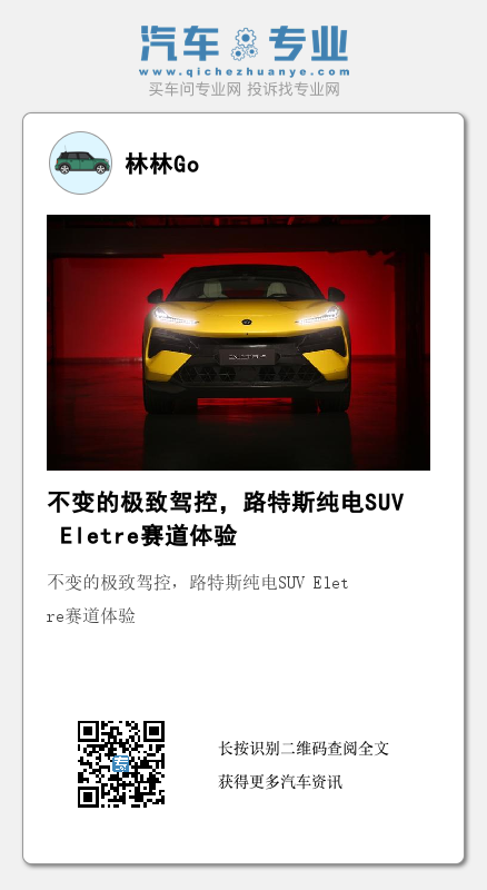 在燃油车时代,路特斯一直在向世人传达纯粹驾控、极致性能的价值理念。随着电动化、智能化的大潮滚滚而来,全新的电气化架构赋予了路特斯Eletre更多进化的可能。在依旧顶尖的运动表现之外,未来我们更期待看到这款纯电超跑SUV在智能方面的进一步表现。