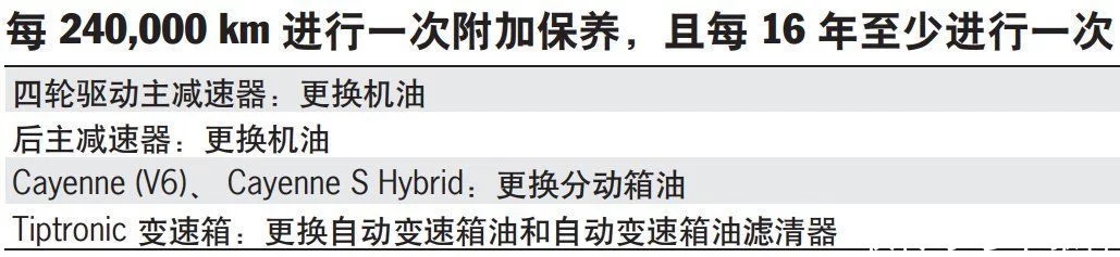 但是大部分的厂商都会把设计寿命定在“至少使用10年”和“至少行驶16万公里”,也就是说市面上那些宣传变速箱油免维护的车,至少16万公里以内是不用换油的。而一些高端车型,由于设计寿命会比普通车更长,所以变速箱油的更换里程会超过16万公里。例如保时捷卡宴的保养手册里面就写道:“变速箱油每24万公里或者至少16年更换一次”,这也间接证明卡宴的设计寿命超过了16年/24万公里。