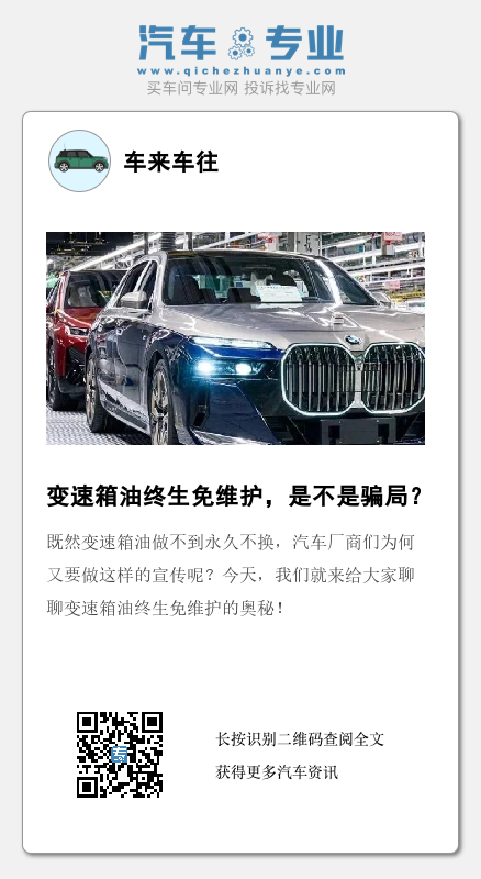 经过一番分析解读,相信大家一定对变速箱终生免维护的说法有了新的认知。不可否认,变速箱油免维护是一种趋势,它可以极大地减少用户的使用成本,而且避免了频繁更换油液造成的资源浪费。但是,由于汽车的使用工况非常复杂,并且行驶里程长,使用时间久,所以为了保守起见,我们还是建议大家定期更换变速箱油,保证变速箱出于良好的工作状态。毕竟比起换油的成本,一旦变速箱损坏,维修变速箱的花费可要比换油贵多了!