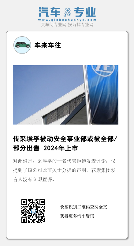 需要指出的是,截至目前,采埃孚尚未决定最终的结果、时间或者估值。对此消息,采埃孚的一名代表拒绝发表评论,仅提到了该公司此前关于分拆的声明。花旗集团发言人没有立即置评。