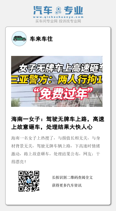 海南一名女子上热搜了,与颜值长相无关,与身材背景无关,驾驶无牌车辆上路,下高速时情绪激动,路上故意砸车,处理结果公布,网友:干得漂亮!