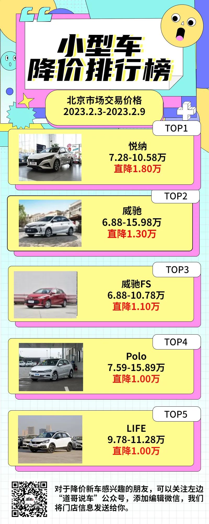 小型车方面,降价前五名还是那几位,降价幅度最高不超过2万,毕竟是小型车,本身价格就不算高,基本不会出现过高的优惠。