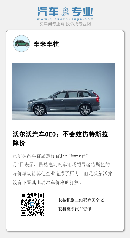 据外媒报道,沃尔沃汽车首席执行官Jim Rowan在2月9日表示,虽然电动汽车市场领导者特斯拉的降价举动给其他企业造成了压力,但是沃尔沃并没有下调其电动汽车价格的打算。