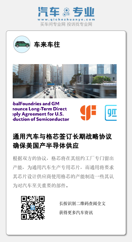 根据双方的协议,格芯将在其纽约工厂专门留出产能,为通用汽车生产专用芯片,而通用将要求其芯片设计供应商使用格芯的产能制造一些其认为对汽车至关重要的部件。