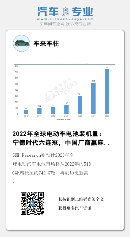 韩国市场研究机构SNE Research公布的数据显示,2022年,全球电动汽车(EV、PHEV和HEV)电池装机量为517.9 GWh,同比增长71.8%,延续了自2020年第三季度以来的增长趋势。