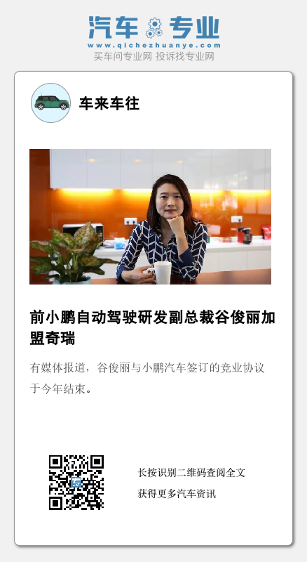 有媒体报道,谷俊丽与小鹏汽车签订的竞业协议于今年结束。
