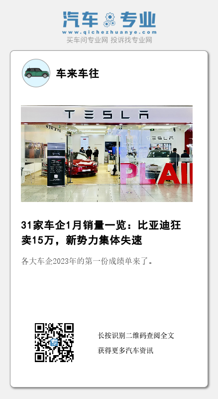 各大车企2023年的第一份成绩单来了。