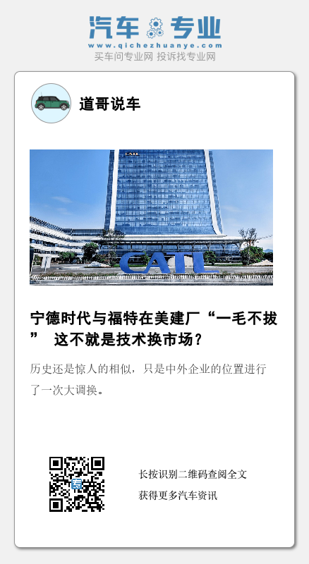 然而,在如今的电动化转型浪潮中,中国企业与福特们的角色发生了天翻地覆的变化。福特与宁德时代的合作虽然有着“各取所需”的成分,但宁德时代到底是扮演着“技术输出”的角色,而福特则和多年前的中国车企一般为他国企业提供着技术输出的环境。