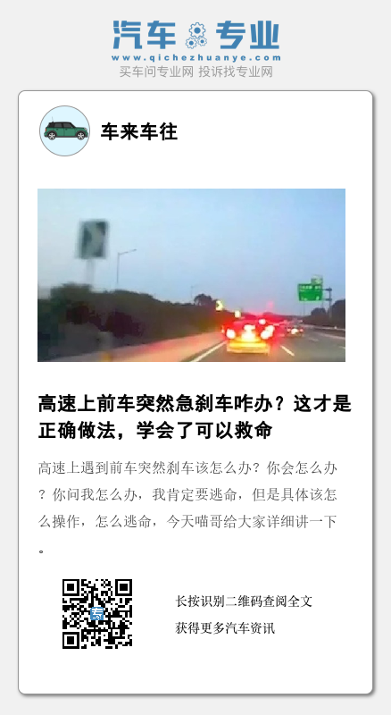 高速上遇到前车突然刹车该怎么办?你会怎么办?你问我怎么办,我肯定要逃命,但是具体该怎么操作,怎么逃命,今天喵哥给大家详细讲一下。