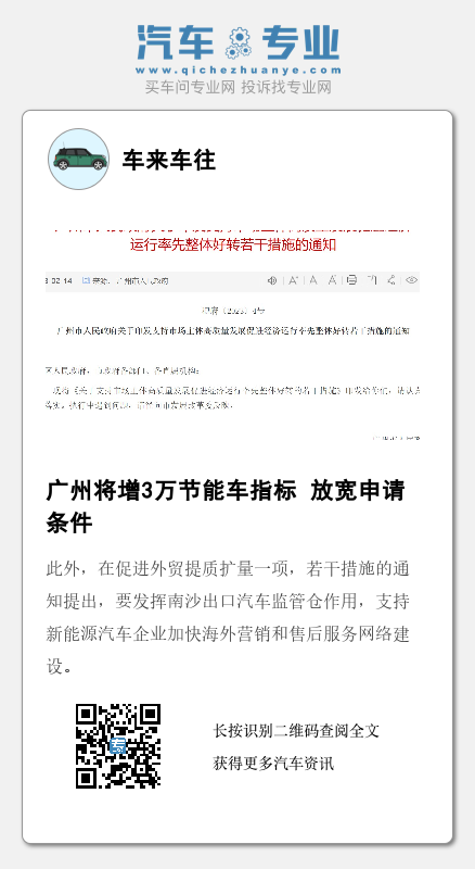 广州上半年将增加3万个节能车指标,并放宽非本市户籍人员申请条件