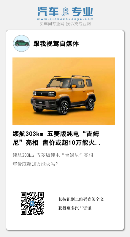尺寸方面,申报信息显示其长宽高分别为3381/1685/1721mm,轴距为2110mm,配备3门4座。对比一下老款吉姆尼,其车身长度为3695mm,轴距为2250mm,同样提供3门4座,尺寸上相较悦也更大,也可以看出五菱仍然在巩固纯电小微车市场。