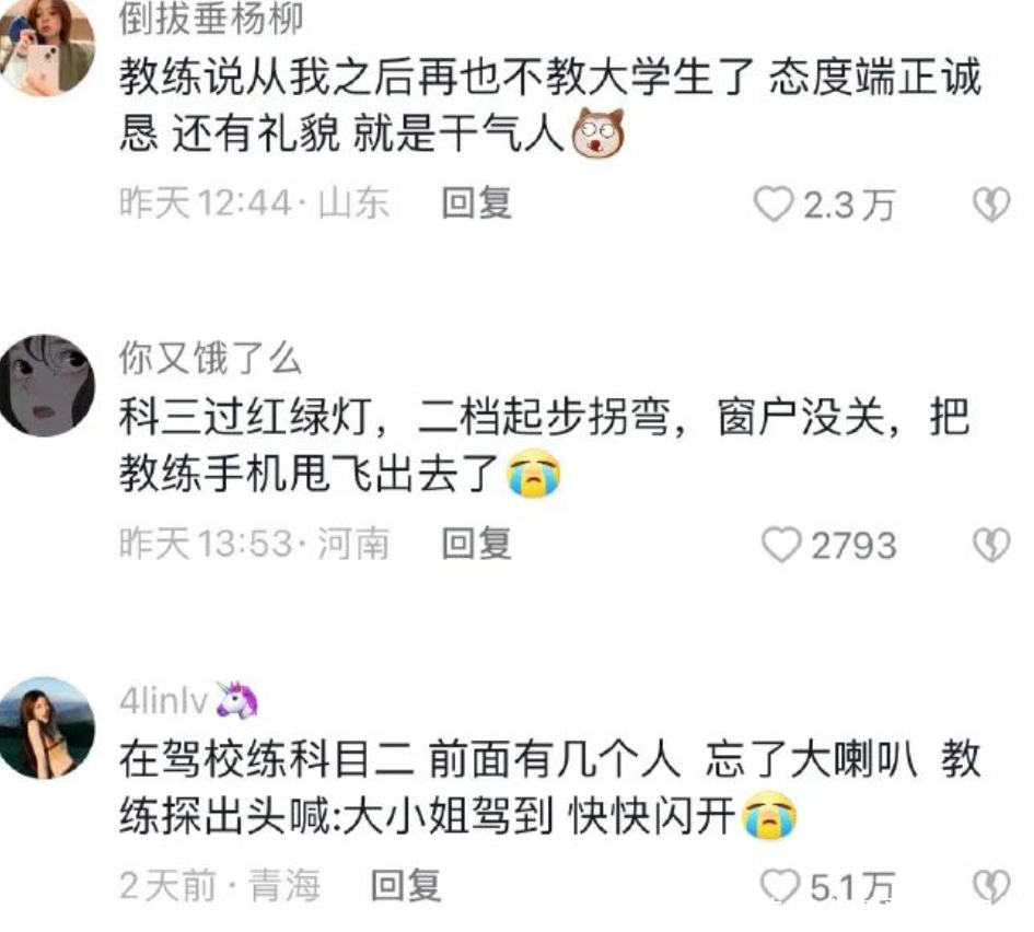 在驾校的场地就经常能看到一些大学生已经老大不小了,却被驾校教练骂的一声也不敢吭。然而就算这样,教练们心中的怒火也未得平息。