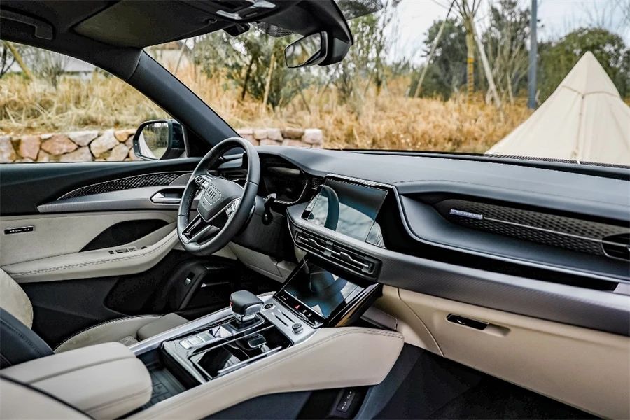 打开车门,浓厚的奥迪家族风格除了体现在充满立体感的设计方面,在材质和用料部分,Q6也保持了一线豪华品牌该有的质感与细腻,真皮、金属和绒面的搭配恰到好处。上汽奥迪Q6配备的12.3英寸全液晶仪表+10.1英寸中控屏+8.6英寸下联屏,这套组合广泛应用在奥迪旗舰级产品上,中控屏内置的开放式Asterix生态系统值得称赞,包括高德地图、爱奇艺、车载微信等本土化应用均有搭载,并且该生态具备更多迭代升级可能性。