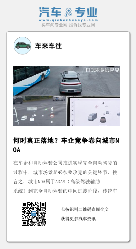 而对于消费者而言,城市NOA是一项新事物,发展初期难免遭遇“阵痛期”,比如感知系统不够准确、路线规划不够智能以及并线超车不够果断等等,容易产生一些不好的驾驶体验,所以更需要用户的鼓励和包容。相信随着技术不断发展以及相关产业链的逐步完善,城市NOA也将一步步实现自身的升级与进步,为进入完全自动驾驶时代打下坚实基础。