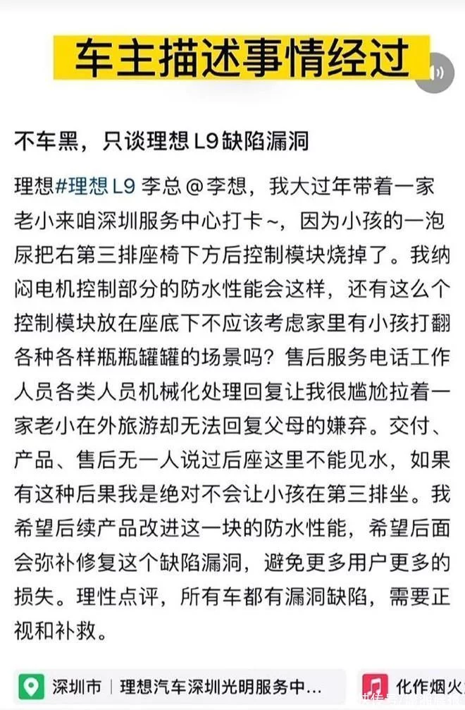 最近关于理想L9的新闻特别多,先是在过年期间,一辆理想L9起火,紧接着是一辆理想L9的后座下面的控制模块被一泡尿给烧坏了。所以我们来聊聊这个话题。
