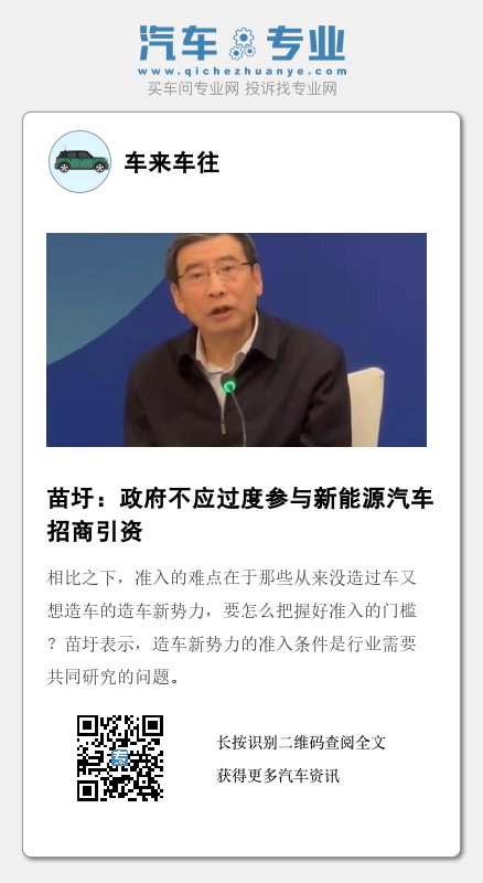 相比之下,准入的难点在于那些从来没造过车又想造车的造车新势力,要怎么把握好准入的门槛?苗圩表示,造车新势力的准入条件是行业需要共同研究的问题。