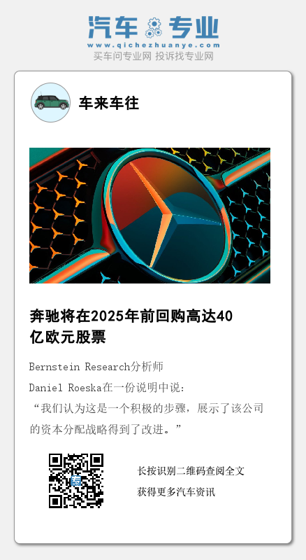 据外媒报道,梅赛德斯奔驰在2月16日表示,该公司计划从2023年3月起的两年内回购高达40亿欧元(42.8亿美元)的股票。奔驰此举受到了分析师的好评,该公司将于2月17日公布其全年业绩。
