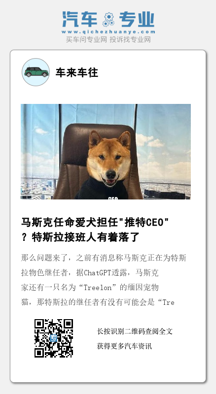 尽管目前来看,这应该又是马斯克开的一个玩笑,但也暗示了马斯克的选人计划或许并不顺利,不过,瞧着这位新任“掌门人”戴眼镜的样子,一看就是一只有文化的“修狗”,就是不知道为了说服这位新的“接班人”,马斯克给出了多大的诱惑,一吨香肠,还是一车牛排?