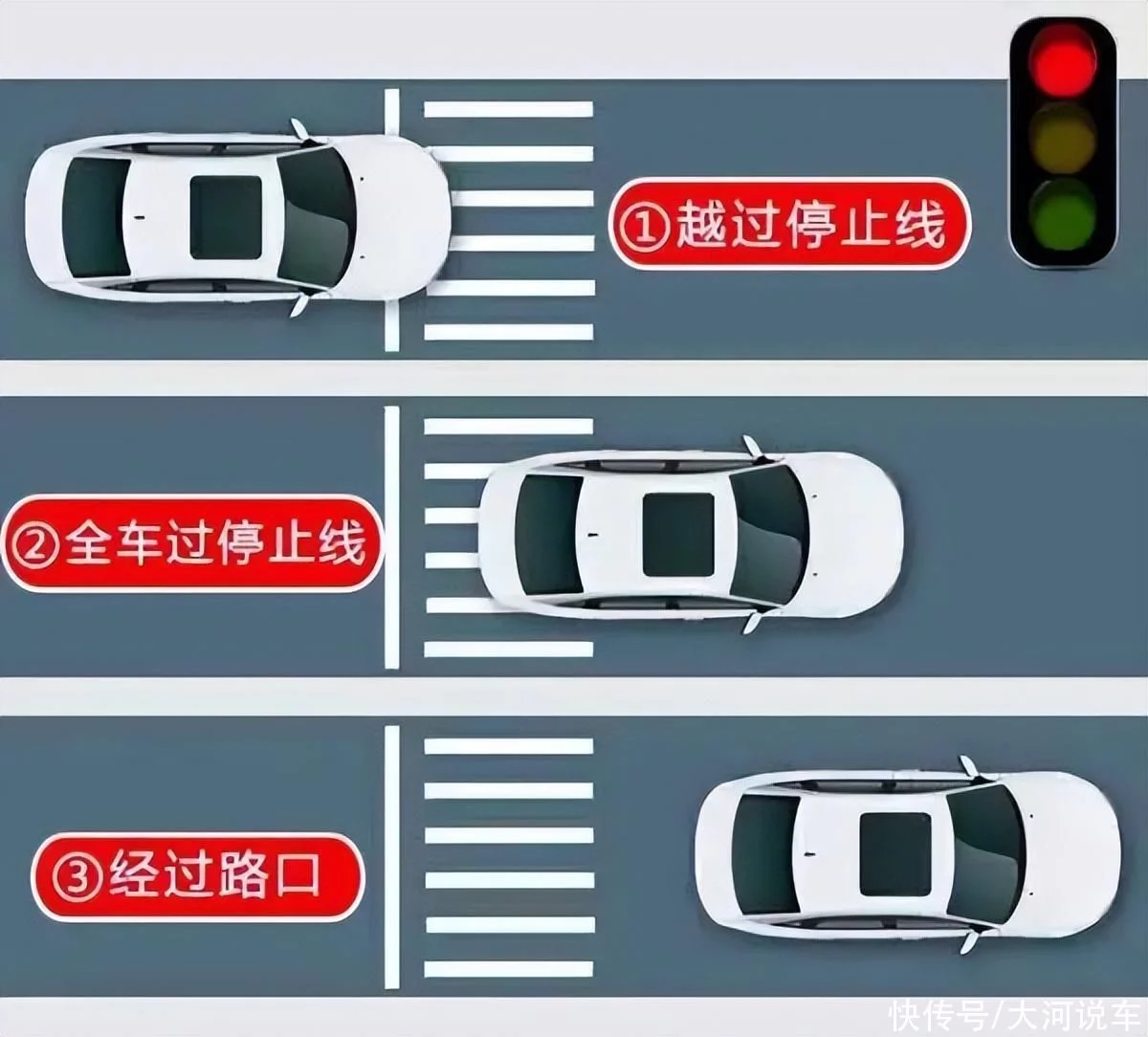红灯已亮,车身越线