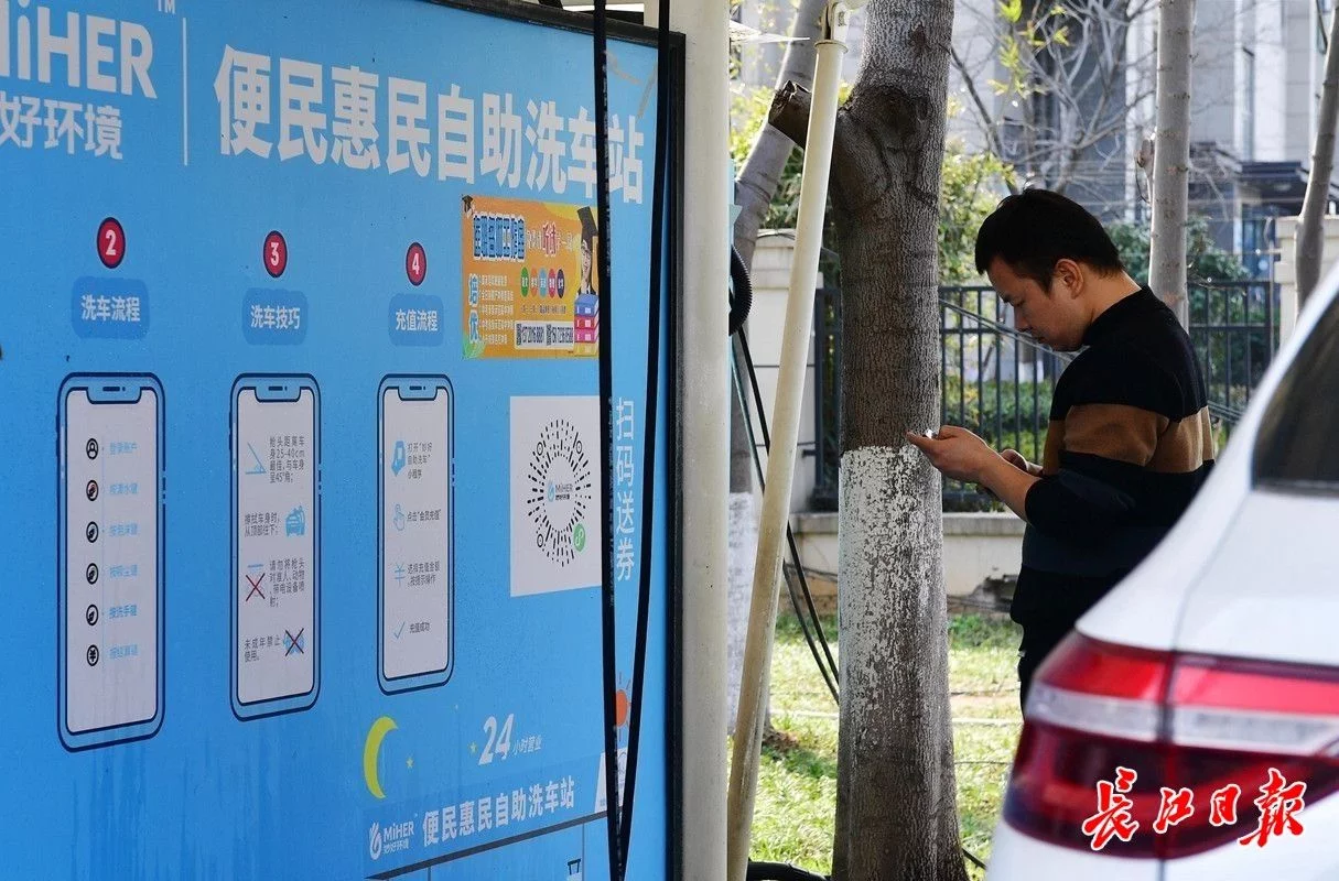 长江日报大武汉客户端2月19日讯 2月19日,武汉天气转晴,午后暖意融融。东西湖区奥园东路和马池东路的两处自助洗车站内,前来洗车的市民排起了队。打开手机扫码注册后登录账户,即可自行操作洗车机,打开水枪喷水、喷泡沫进行洗车,洗车机根据每一项功能的使用时间进行计费。一位市民带着孩子一起体验洗车,用时30多分钟,计费约13元。他说,自己洗车可以洗得更干净,而且也便宜很多。(长江日报记者李永刚 摄影报道)