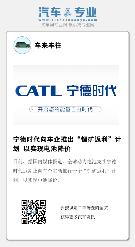 日前,据国内媒体报道,全球动力电池龙头宁德时代近期正向车企主动推行一个“锂矿返利”计划,以实现电池降价。