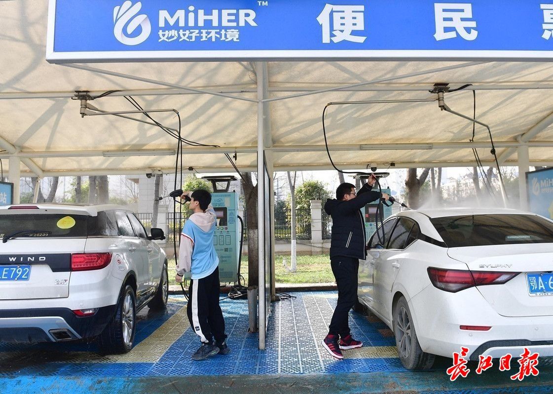 长江日报大武汉客户端2月19日讯 2月19日,武汉天气转晴,午后暖意融融。东西湖区奥园东路和马池东路的两处自助洗车站内,前来洗车的市民排起了队。打开手机扫码注册后登录账户,即可自行操作洗车机,打开水枪喷水、喷泡沫进行洗车,洗车机根据每一项功能的使用时间进行计费。一位市民带着孩子一起体验洗车,用时30多分钟,计费约13元。他说,自己洗车可以洗得更干净,而且也便宜很多。(长江日报记者李永刚 摄影报道)