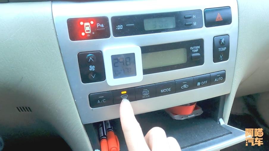 这个时候你用外循环,再辅以吹挡风玻璃的模式,一定要把这个AC键开启。