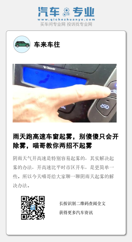 如果人坐的比较多,温差实在太大,那么可以辅以一个小空调,兼外循环的模式,可以很好地抑制,高速起雾的情况。