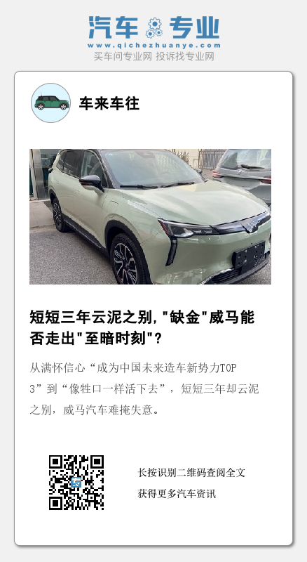 未来,威马能否继续以入局者身份参与中国新能源汽车时代的转型,很大程度上取决于其资金链的修复速度。希望在不久的将来,威马客服电话不再冰冷的重复“目前线路正忙,请稍等”,而是“您好,威马,很高兴为您服务”。