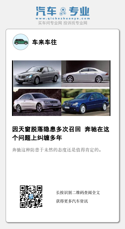 尽管目前还没有与该缺陷相关的伤害报告,但奔驰多年来一直在天窗问题上“纠缠”,分批多次召回存隐患的车辆,这种防患于未然的态度还是值得肯定的。