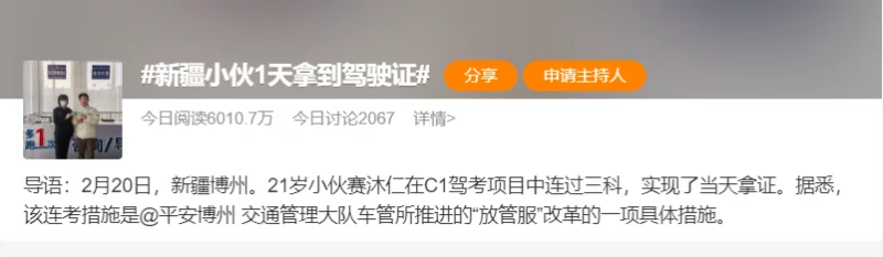 并且当天就拿到了驾驶证