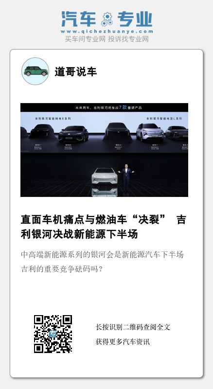 银河产品系列除了有全面发力新能源的象征意义外,从多品牌之争的角度来看,之所以是系列而不是品牌,是希望保持专注,聚焦一个吉利,把母品牌做大做强,实现价值向上。