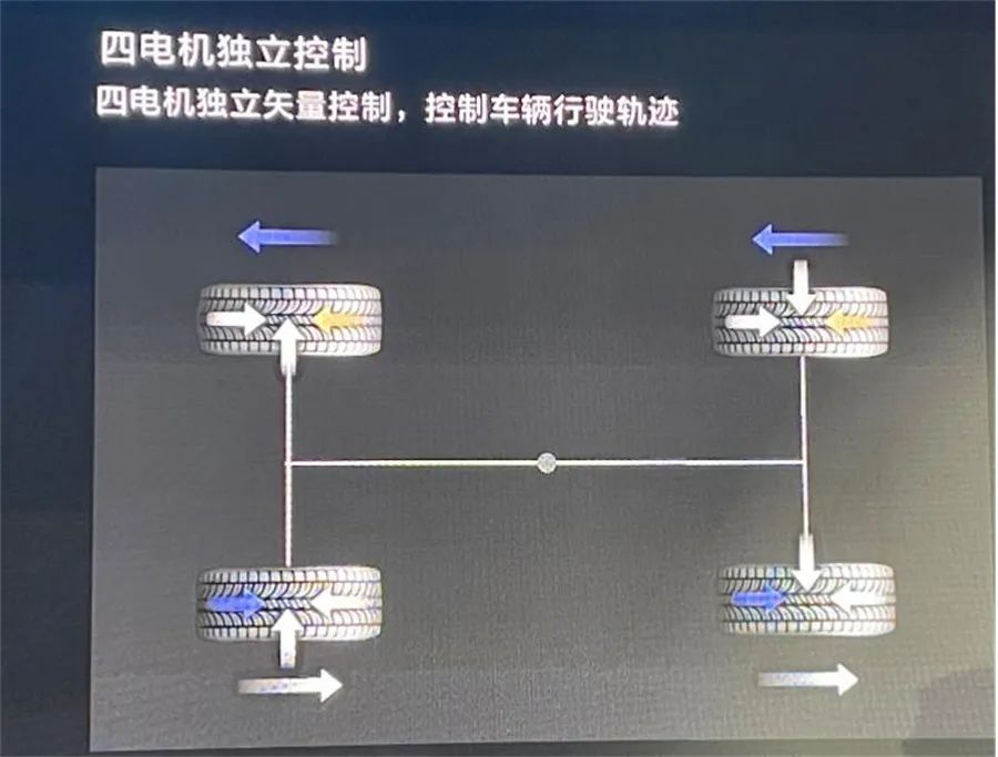 易四方技术平台搭载的电驱总成系统最大马力可超1100匹,最高转速可达20500rpm,行业领先。为了能达到这么高的功率,易四方技术平台选择搭载的四个轮边电机,而非轮毂电机,这样能够实现纯粹的四轮独立驱动,并根据驾驶场景的需求,对四个车轮的动力进行独立精准的控制。