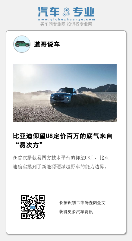 在首次搭载易四方技术平台的仰望U8上,比亚迪确实摸到了新能源硬派越野车的能力边界。