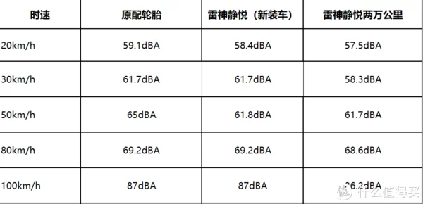 经过两万公里的使用之后的数据对比可以看出: 5个速度段环境噪音数据均比当时新胎刚装车所测的要好,这个结论与不少车友的认知相悖。 一部分人认为,新轮胎上脚的感受是最好的,但用一阵之后就适应了,也就不觉得轮胎好了。 还有人认为,轮胎的性能是一定会衰减的,所以静音性是越来越差的。 而这组数据能够说明两个问题: 一是,当初我测试的新装车轮胎,其实没有“开胎”,新轮胎需要有200km以上的测试,才能把橡胶外部不容易观察到的保护层给磨去,在这个过程之后,轮胎的性能才能得到充分的发挥。 二是,静音棉轮胎的静音性能衰减,是可以少到忽略不计的。不论是对比原配轮胎还是对比新装时候的雷神轮胎,两万公里之后的雷神轮胎,都能得出这个结论。 反映到实际体感,特别是2022年末对疫情的放开,我自己阳康之后就很容易疲劳,特别是对噪音更敏感,但现在每次出差开长途回来,精神上被路噪攻击的感觉其实还越来越少,这和采集的数据一致。