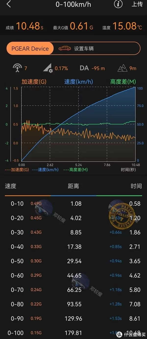 而0-100的加速成绩我是不太在乎的,毕竟我这辆雷凌就是代步的角色,不过都和制动测试顺道一起做了,成绩也比原厂的奔着12秒要好不少,10.48秒可以破百。