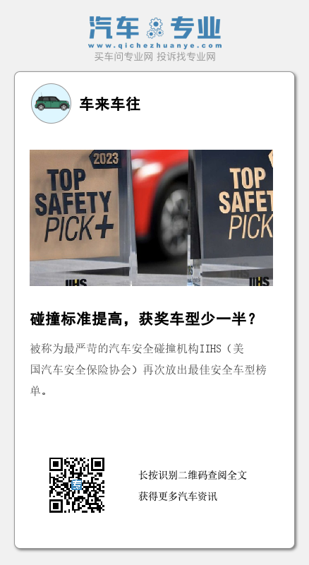 针对今年的榜单情况,IIHS总裁David Harkey表示:“今年的获奖数量较少,因为我们正在挑战汽车制造商们已经取得的安全成绩,希望在此基础上能再接再厉,相信明年榜单车型会增加”