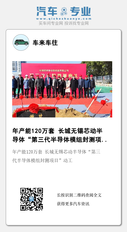 2月26日晚间,长城汽车官方宣布,其森林生态体系的一员——长城无锡芯动半导体科技有限公司(简称“芯动半导体”)“第三代半导体模组封测项目”奠基典礼在无锡举行。
