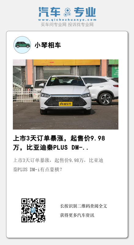 比亚迪秦PLUS DM-i(图片|配置|询价)上市3天,订单就暴涨,三天订单就破1.5万辆,由此可见该车的性价比和产品力均有不错的表现。起售价9.98万的价格,让众多同级别中的紧凑型车倍感压力。比亚迪这波操作打的各大车企措手不及。今天就解析这台车,看看它到底有多卷。